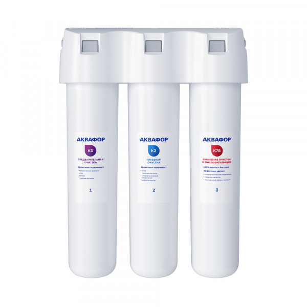 Картриджи последовательно очищают воду и от видимых примесей, и от растворенных. Первый картридж задерживает более крупные частицы, а каждый последующий - более мелкие. Чем больше ступеней - тем лучше фильтр очистит воду: поймает более мелкие видимые частицы ржавчины, песка и ила, успеет захватить из воды максимум растворенных примесей - хлора, нитратов, тяжелых металлов и других.